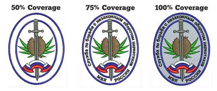 Patch pricing is determined by the amount of embroidery coverage. We commonly produce patches with 50%, 75%, and 100% coverage.